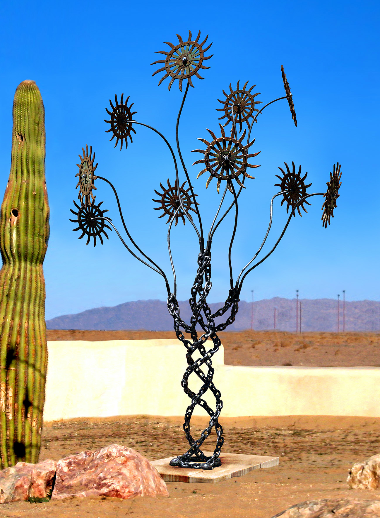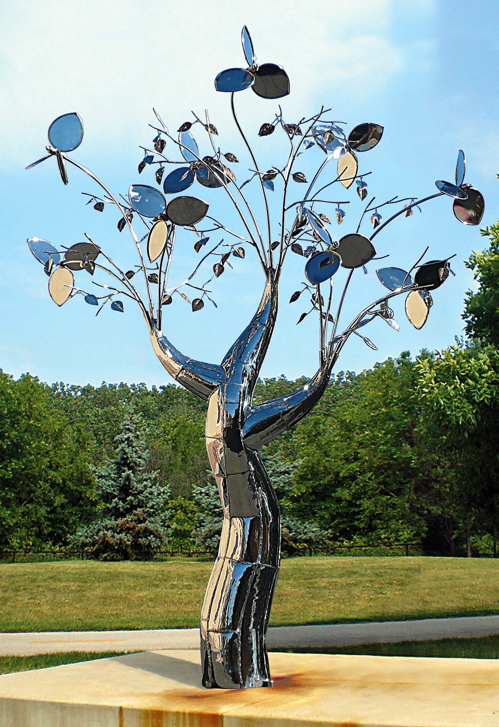 10 ft polished stainless steel kinetic “Evolution of Flora” sculpture. Private commission for the CEO of Invicta Watch Co.