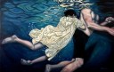 “Pillow Talk in a Red Dress” and “Yellow Pages”, both Collage, 24×36″ on Canvas